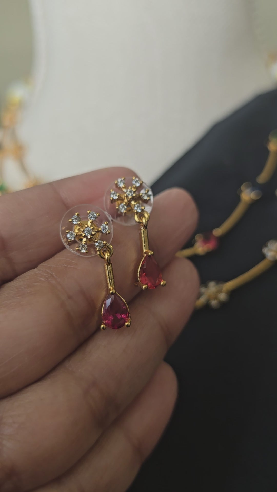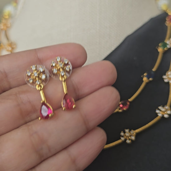 Multi Stone Necklace earrings set AD jewellery set Matte finish necklace