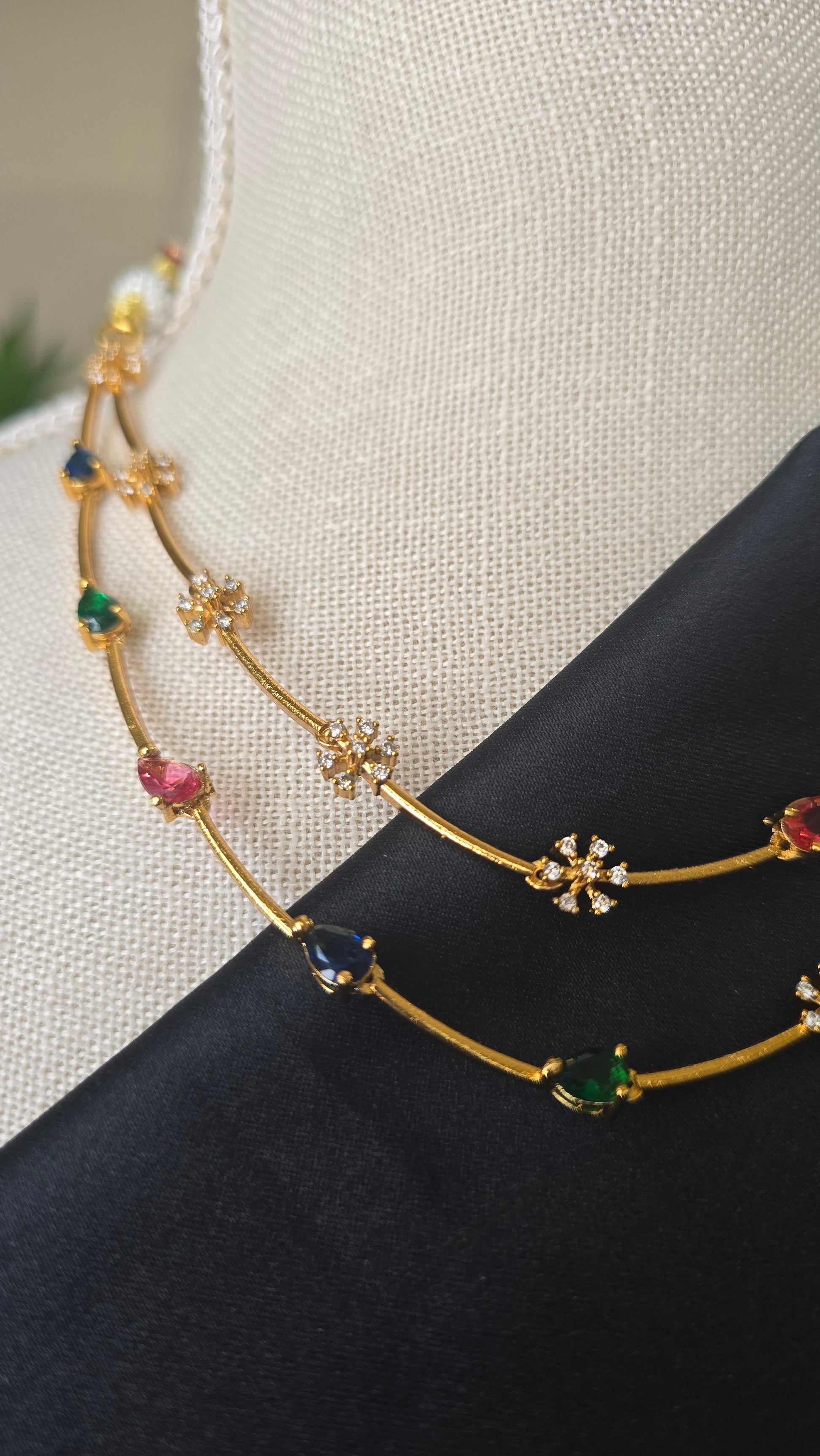 SOUTH INDIAN JEWELLERY- Multi stone 2 layer Necklace Necklace Set